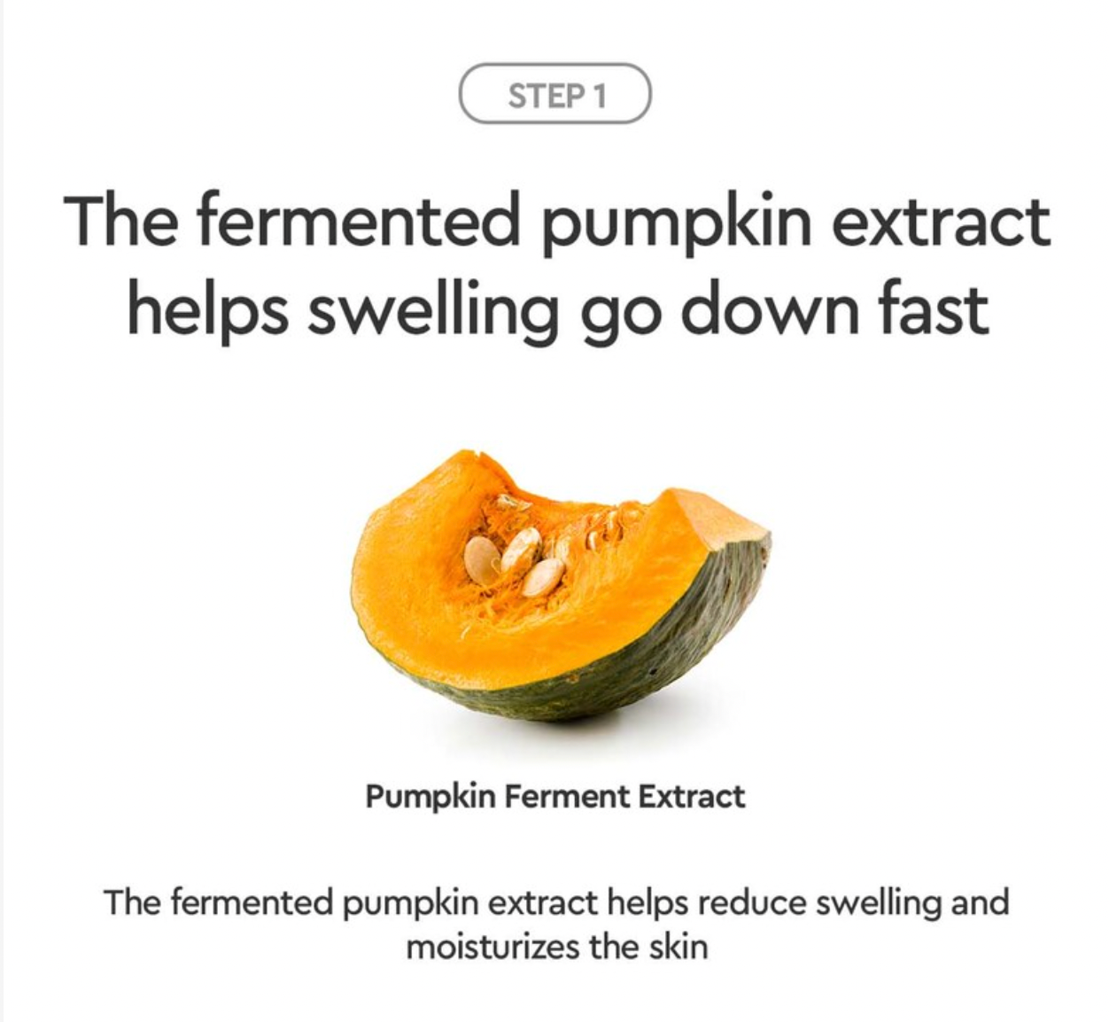 One of the key ingredients in this mask sheet is fermented pumpkin extract, renowned for its ability to relieve swelling. It works to soothe your skin and reduce puffiness.
