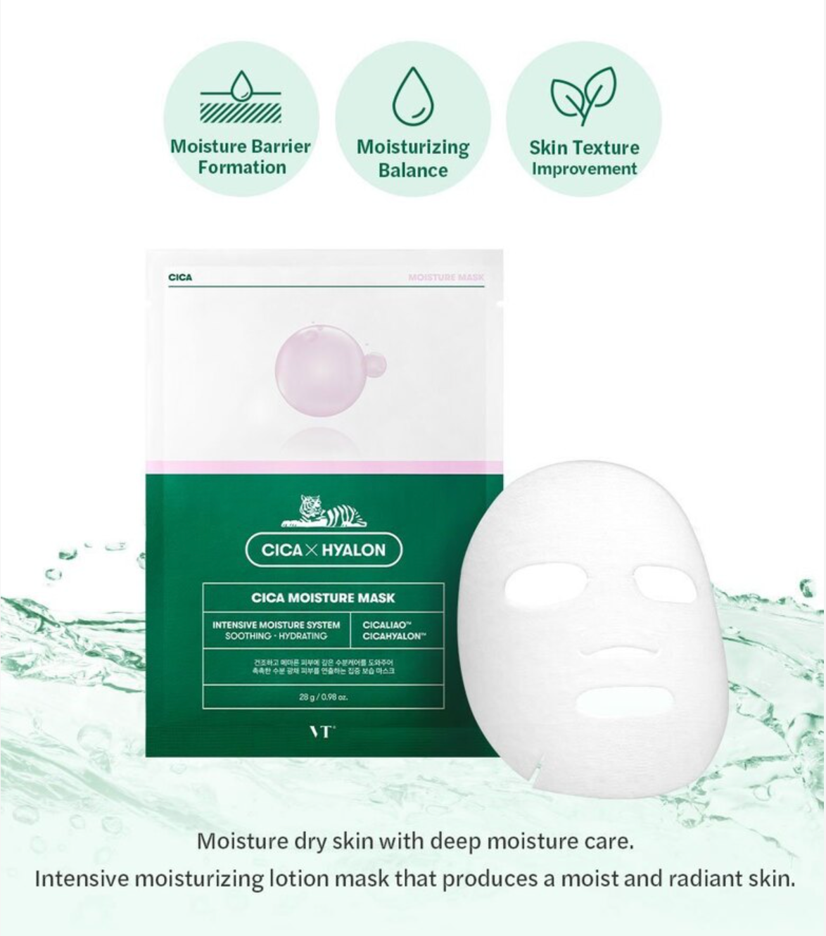 This Cica moisture mask is formulated for dry skin. With its water essence formula, it delivers an intense boost of hydration to your skin, improves the oil and moisture balance and improves skin texture.